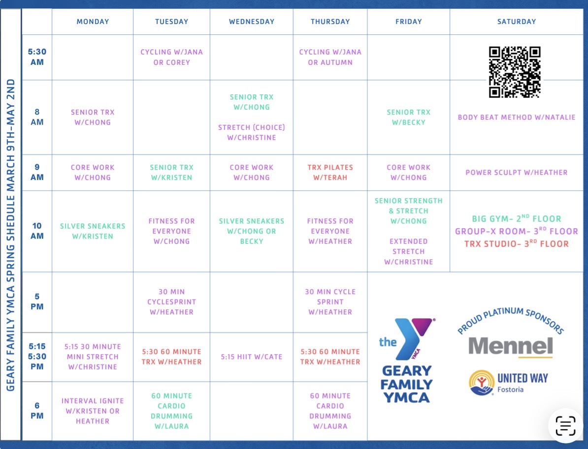 Senior Strength & Stretch- This class will focus on moves for strength, balance, and stretching. A chair will be available for seated exercises or standing support. Big Gym Friday @ 10 AM with CHONG.