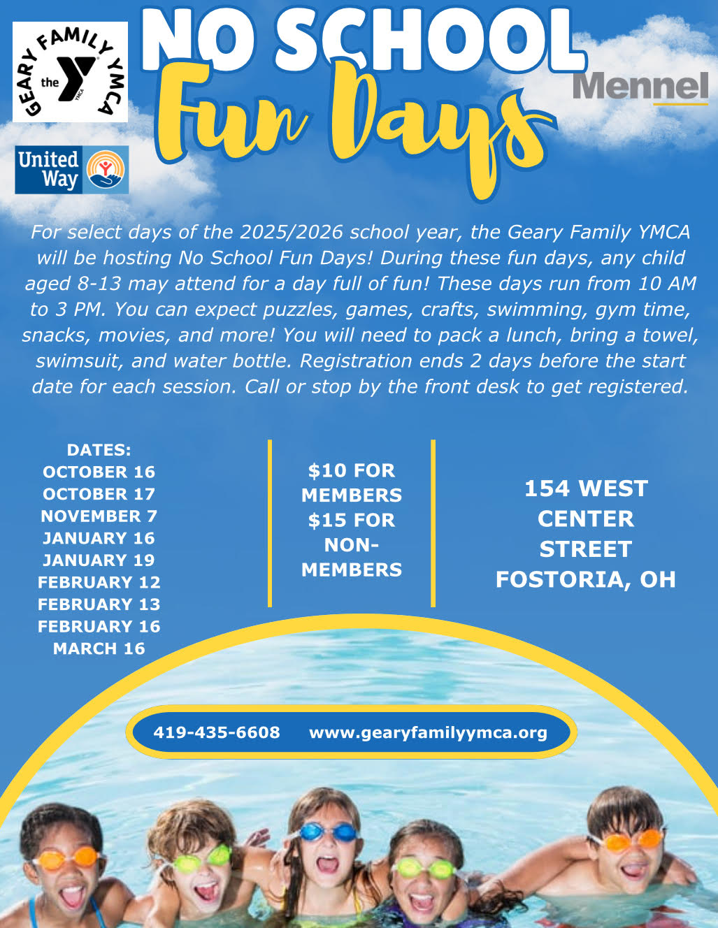 You can register at the front desk 2 weeks before the scheduled fun day! If you have any additional questions you can contact Trey Yates via email at tyates@gearyfamilyymca.org.